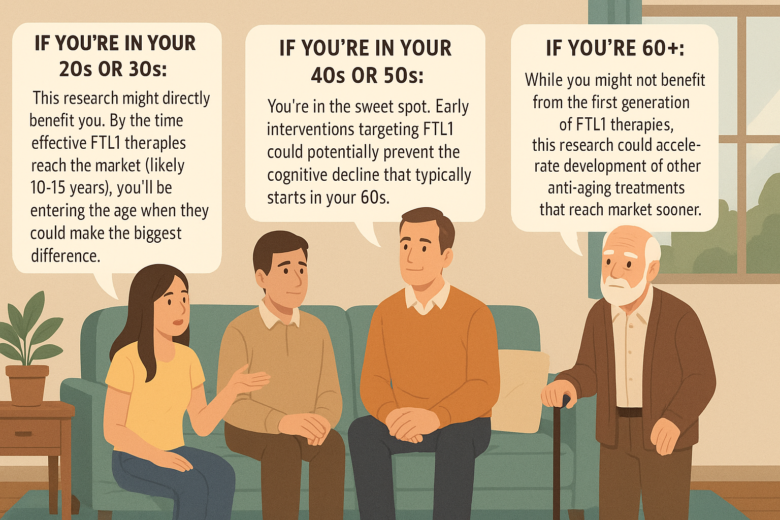If you're in your 20s or 30s: This research might directly benefit you. By the time effective FTL1 therapies reach the market (likely 10-15 years), you'll be entering the age when they could make the biggest difference.