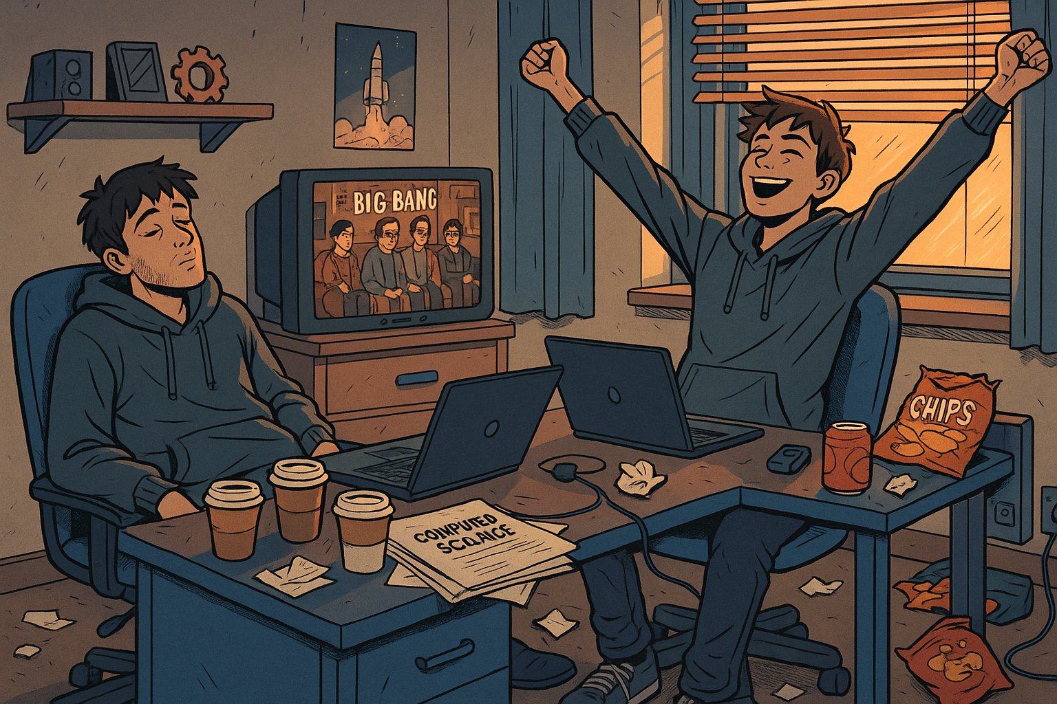 But the 6am success, an hour of sleep, and caffeine-fueled presentation at the lab in the uni make the whole story worthwhile. Sprinkle in a Big Bang Theory procrastination marathon with a friend in "crime" as the subconscious tries to process a boatload of computer science papers you've read as preparation for the coding session...